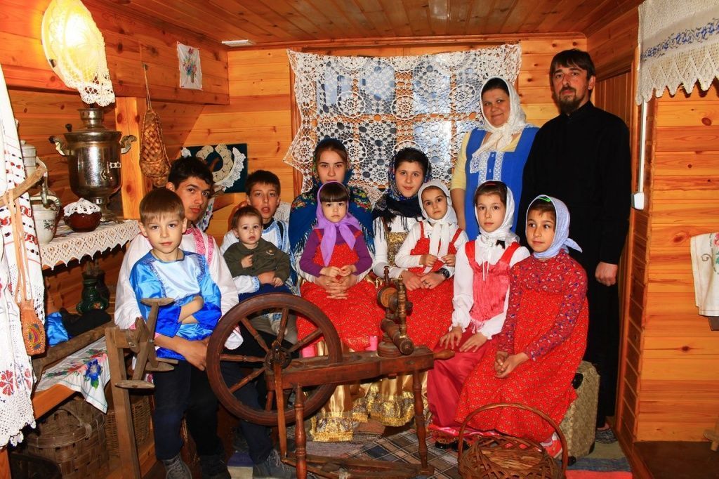 Привез батюшка двадцать лет назад маленькую хрупкую девчушку из Нижегородской семинарии, прямо сказать – дюймовочку с длинной косой – жену любимую и регента церковного. Росла на наших глазах. Училась – не ленилась у всех, у кого можно было набраться мудрости житейской. Дети от любви рождаются, а уж они-то не медлили, один другого догоняли. С помощью добрых людей со временем домик малый прикупили. Тут уж матушка за дело взялась, проявила свою хозяйскую домовитость, гнездо семейное вила – теплое, уютное, очень гостеприимное. Стала батюшке опорой и надежным тылом. Детский щебет и теплая доброжелательная атмосфера обнимают всякого сюда входящего. Чтут здесь память предков и народные традиции.